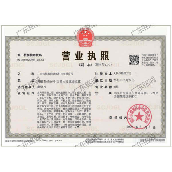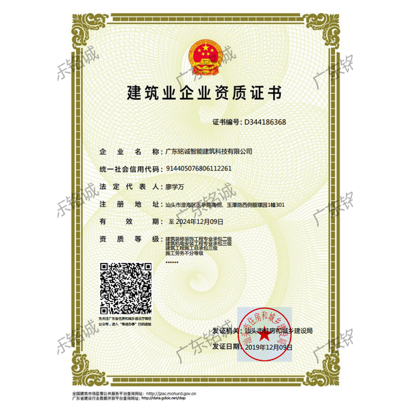 廣東銘誠智能建筑科技有限公司成立于2008年,公司注冊資金為6000萬元,集辦公裝修、酒店裝修、家庭裝修、軟裝裝飾、娛樂場所裝修為一體的裝飾公司,率先提出“創造現代人文空間,挑戰業界高峰”的雄壯口號,并以此為目標,完成了一大批具有影響力的大型公裝工程:其中包括廣州國際中醫藥展貿中心、奧飛澄海音樂廳、澄海區國家稅務局、澄海興信小額貸款、澄海潮商村鎮銀行、汕頭龍湖賓館、澄海豪庭大酒店、御園國際飲食城、澄海福晉軒酒家、享樂匯保健有限公司、假日商務酒店、尚景康園物業、星輝車模股份有限公司、奧飛動漫有限公司、香港國際玩具、汕頭萬基貿易有限公司、泰興源實業有限公司、汕頭皇冠玩具有限公司等;家裝工程包括南澳黃金海岸整幢的精裝房、中信華府、富春華庭、金信鳳凰名城、凱旋花園、中信金城、柏嘉半島、陽光海岸、金葉島等高等住宅。 ? 廣東銘誠智能建筑科技有限公司經過十余年的建筑裝飾裝修施工領域項目積淀,于2018年2月取得“建筑裝修裝飾工程專業承包二級”、“建筑機電安裝工程專業承包三級”、“建筑工程施工總承包三級”、“施工勞務不分等級”、“安全生產許可證”等專業資質,并于2021年8月建筑裝修資質正式升級為“建筑裝修裝飾工程專業承包一級”。這是對企業規模、工程業績、管理水平、誠信表現的肯定,是企業實力與能力的展現。 ? 公司每一項工程都始終堅持“精美設計、精心施工、確保合同承諾;勤奮開拓、追求突出、創造時代精品”的質量方針,力爭做一項工程,樹一座豐碑。 ? ?銘誠擁有一支由專業的營銷精英和客戶顧問組成的營銷隊伍,勤奮、敬業的每一位銘誠員工將本著“贏在別人休息時”的專業精神,為客戶提供全程營銷及售后服務,確??蛻舻暮戏ɡ妫峁w貼周到的服務,做到讓顧客滿意。 ? 銘誠擁有一批資老牌室內環境設計師,以“現代人文空間”為設計理念,為客戶提供人性化、差異化、智能化的室內環境設計服務,準確的將人性化特點與室內環境相融合,達到了“現代人文空間”的和諧統一。 ? ? ? ?自主創新、視社會責任為己任的精神使我們在發展的道路上屢獲殊榮:不斷提升的銘誠品牌知名度和美譽度,靠的是優質的產品,靠的是不斷提升的營業績,靠的是國內的核心技術和誠信的服務。相信通過銘誠人的努力,銘誠將會不斷以新的姿態為提升廣大消費者的生活質量做好服務,為中國裝飾行業設計創新做出突出貢獻。 ? ? “忘掉競爭、共